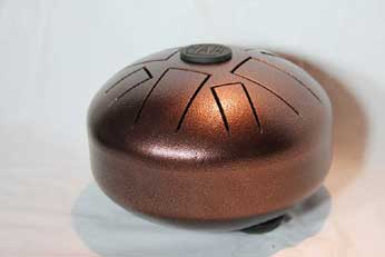 The sound is similar to a handpan or hang drum. Made of solid cast, it is more likely to be played with mallets. pentatonic